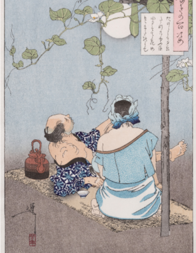 On this full moon evening, surrounded by Tsukioka Yoshitoshi‘s woodblock prints aptly titled ‘ONE HUNDRED ASPECTS of the MOON’, we are hosting a dinner party in the Georgian house with our sake and tasting menu.